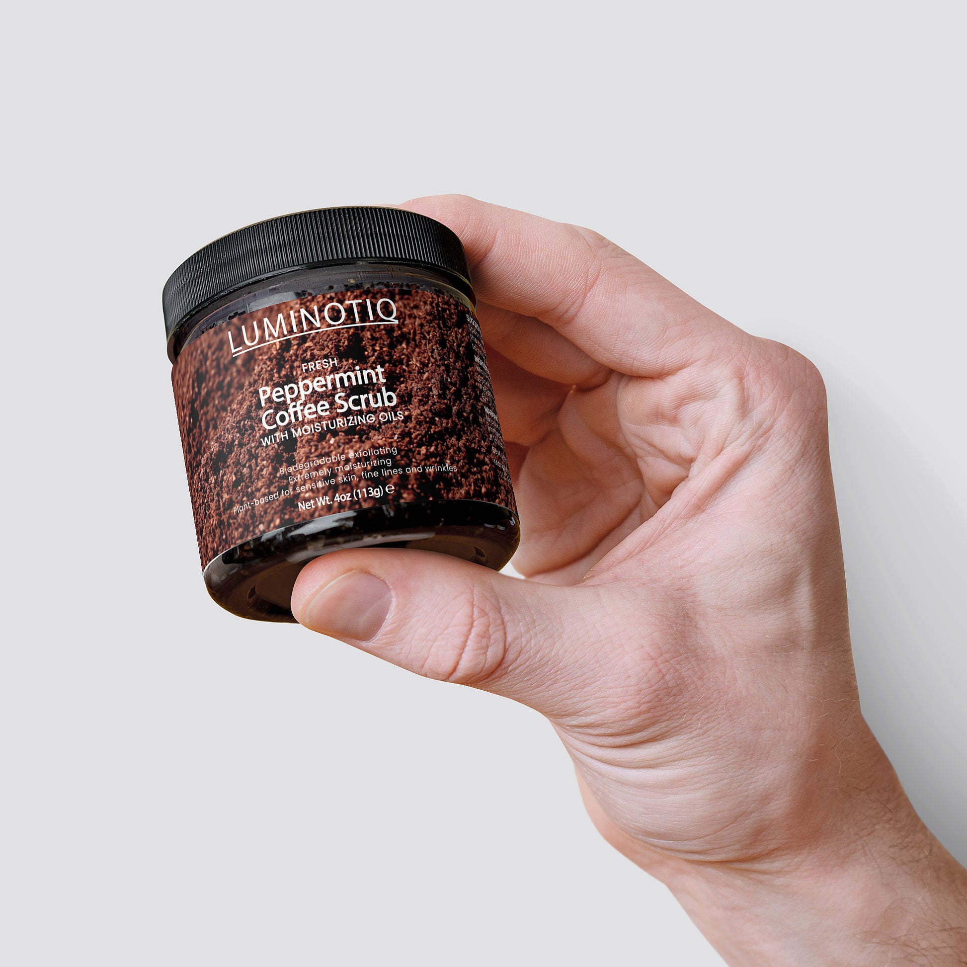 Ingredients: Micro-Roasted Coffee*+, Brown Sugar*+, Coconut Oil*+, Castor Oil*+, Sea Salt, Peppermint Essential Oil*, Tocopherol (Vitamin E)+ // *Organic +Food-Grade