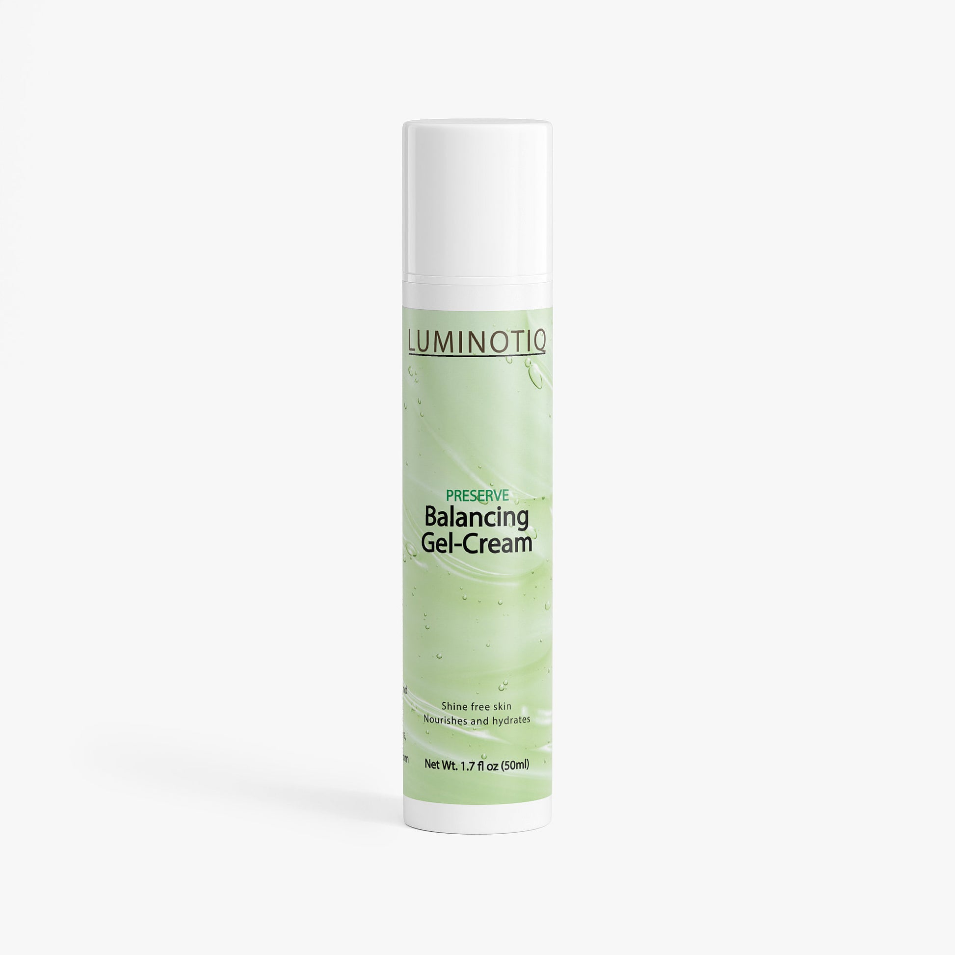 Discover a balanced complexion with our PRESERVE Balancing Gel-Cream. This lightweight, water-based moisturizer is expertly formulated to provide deep hydration while controlling excess shine. Key ingredients like green tea extract and pseudoalteromonas ferment extract work together to balance your skin's moisture without feeling greasy. It's the perfect choice for all skin types, especially those prone to dehydration or oiliness. The formula absorbs quickly and includes allantoin and chamomile to soothe your skin, leaving it feeling calm, refreshed, and perfectly balanced.